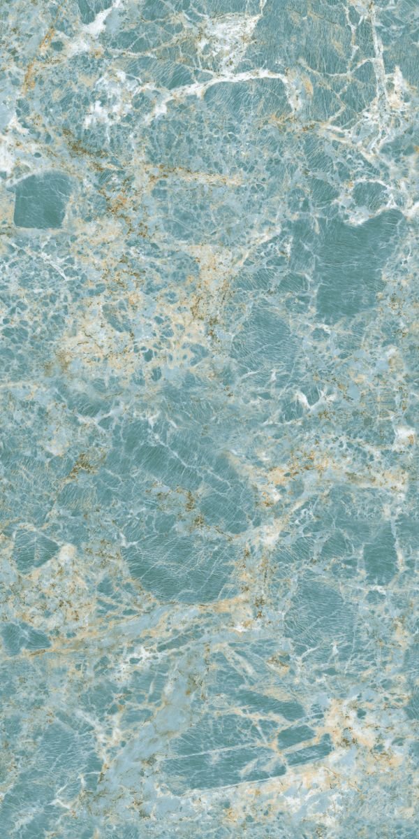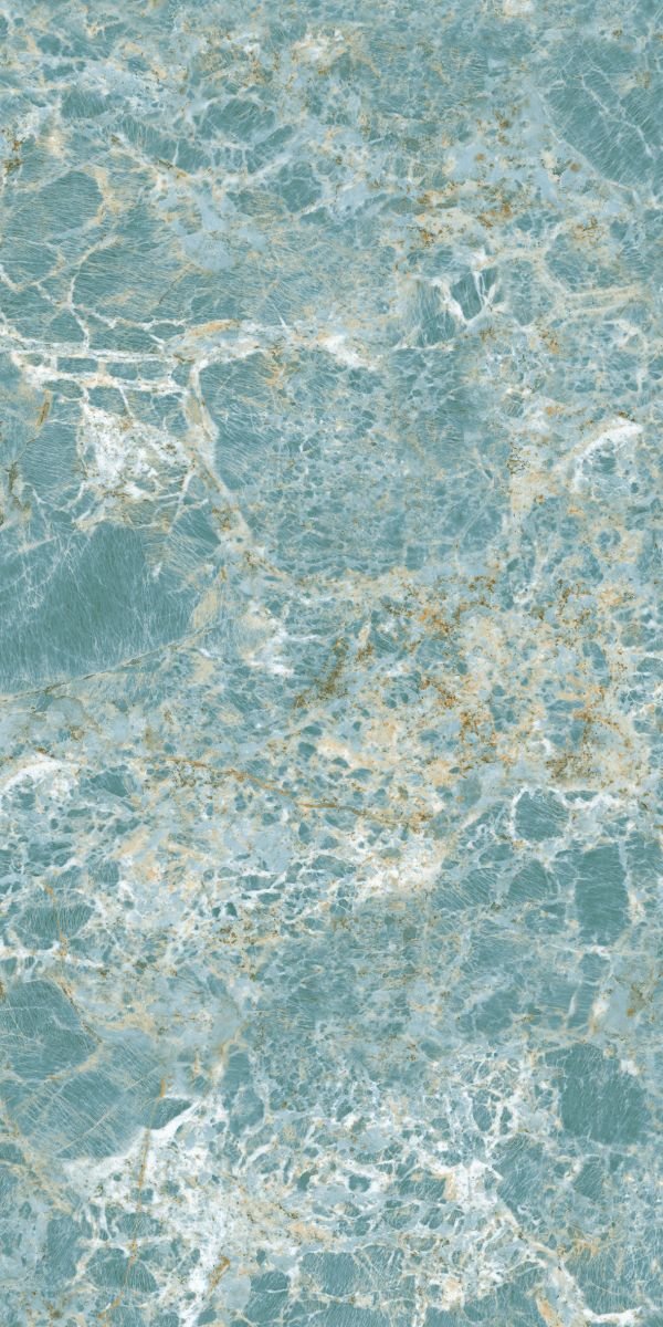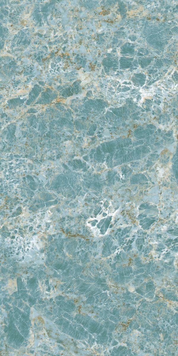 Azzurro Cristallo is a striking ceramic slab inspired by rare Italian blue crystal quartzite and semi-precious stones. The surface showcases a captivating network of crystalline formations, where soft aqua-blue tones blend seamlessly with icy white textures and subtle golden mineral highlights.