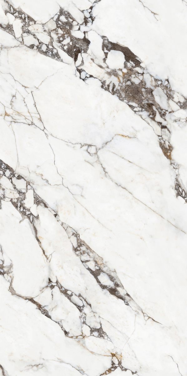 Calacatta Breccia Oro is a luxurious ceramic slab inspired by the distinctive beauty of Italian breccia marble. The surface features a warm white base enriched with bold fragmented veining in grey, brown, and golden tones, creating a striking and artistic composition.
