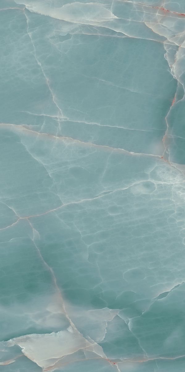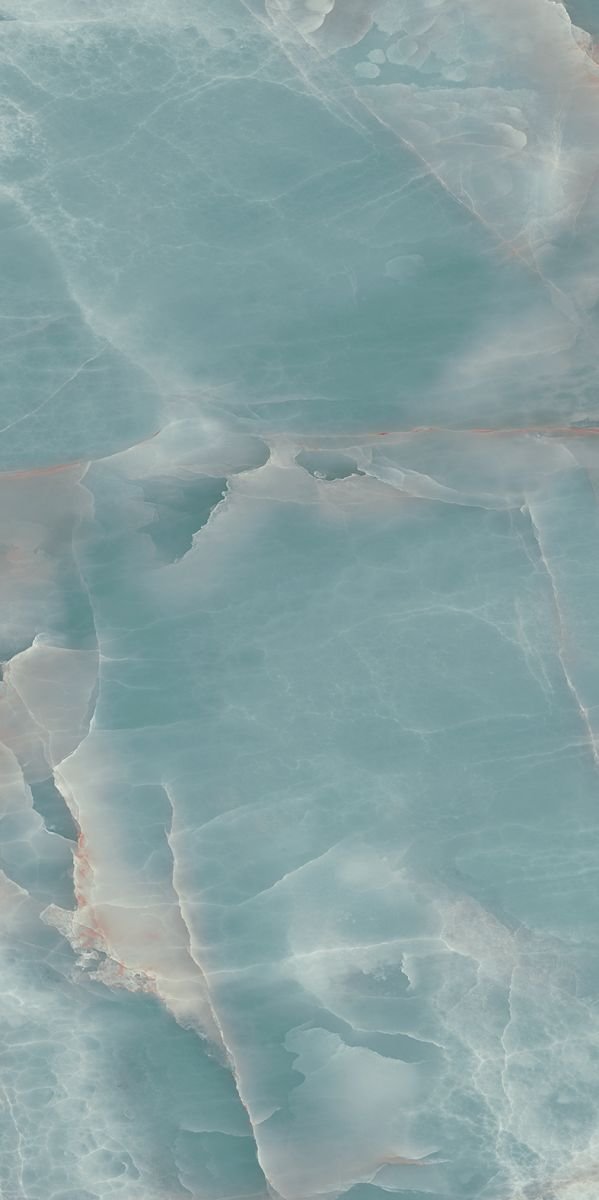 Aqua Lume Onice is a refined ceramic slab inspired by the natural beauty of translucent onyx stone. The surface features soft aqua tones blended with milky white layers, creating a soothing and fluid visual effect.