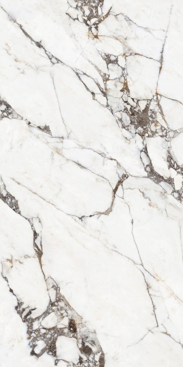 Calacatta Breccia Oro is a luxurious ceramic slab inspired by the distinctive beauty of Italian breccia marble. The surface features a warm white base enriched with bold fragmented veining in grey, brown, and golden tones, creating a striking and artistic composition.